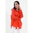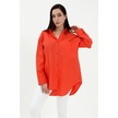 Tek Cepli Kolları Katlı Oversize Kalın Keten Gömlek - Turuncu-turuncu Turuncu