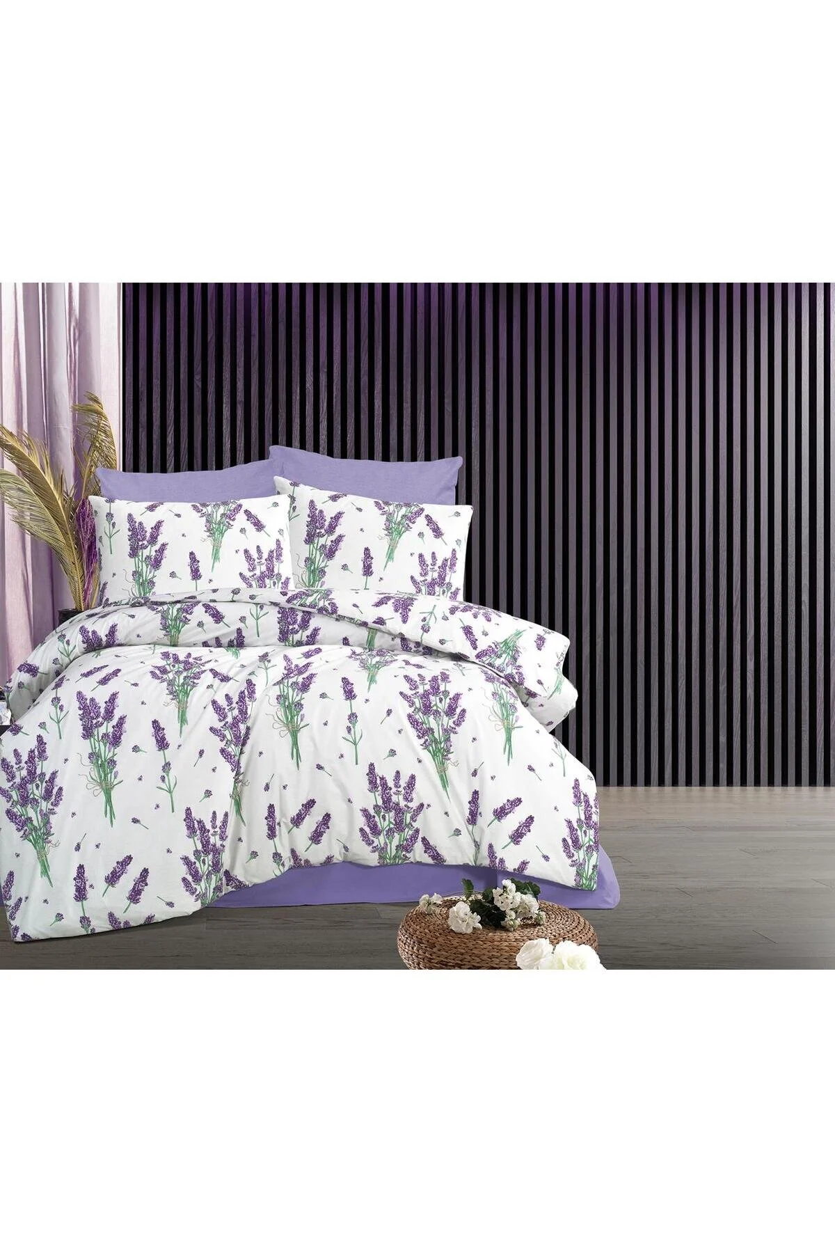 Tek Kişilik Yorgan Kılıfı Yastıklı Premium Ranforce Yumuşak Dokulu Mor Çiçek
