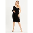 Tek Omuz Şifon Detaylı Büzgülü Elbise-1625 Siyah