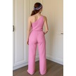 Tek Omuzlu & Gofre Dokulu İkili Takım Pembe