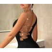 Tek Omuzlu Taşlı Zincir Detaylı Sırt Dekolteli Mini Elbise Siyah