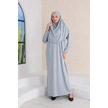 Tek Parça Namaz Elbisesi Gümüş Gri-21002 Gül Kurusu