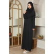 Kol Detaylı Namaz Elbisesi Tek Parça Kendiliğinden Başörtülü Siyah