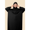 Tek Parça Tesettür Namaz Elbisesi Tak Çıkar Başörtülü Organik Pamuklu Lastikli Kolu Kaymaz Penye Siyah