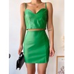 Tek Yırtmaçlı Arkadan Fermuarlı Deri Etek Yeşil S24475 Yeşil