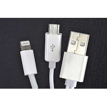 Teknodur Beyaz 2 Uçlu Lightning-micro Usb Kablo 1m