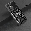 Teknomoda Samsung Galaxy Uyumlu A26 Kılıf Yüzüklü Standlı Sürgülü Kamera Korumalı Tank Sert Silikon Kapak Siyah