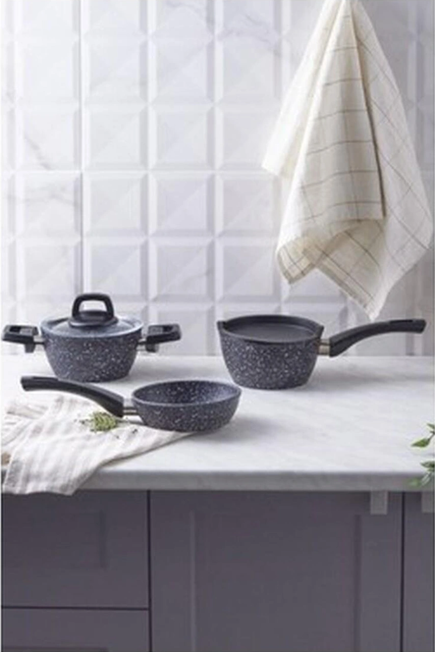 Teknotrust 5 Parça Granit Tencere Ve Tava Seti, Şık, Dayanıklı Ve Yapışmaz Mutfak Gereçleri Bakır - Siyah