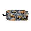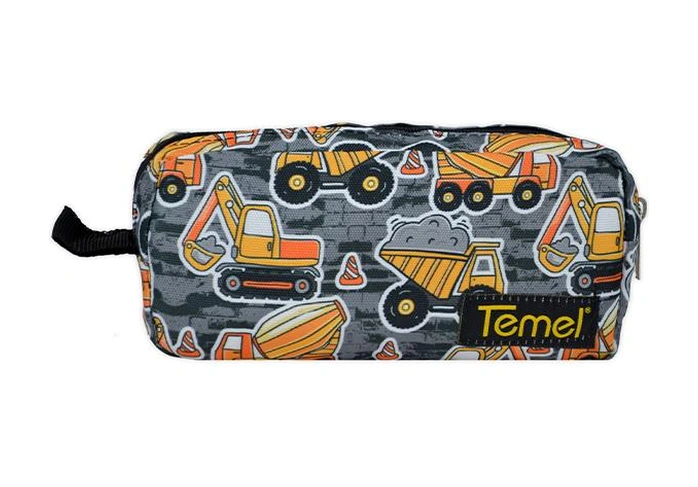 Temel İş Makinalı Desenli Gri Tek Gözlü Kalem Çantası Çok Renkli