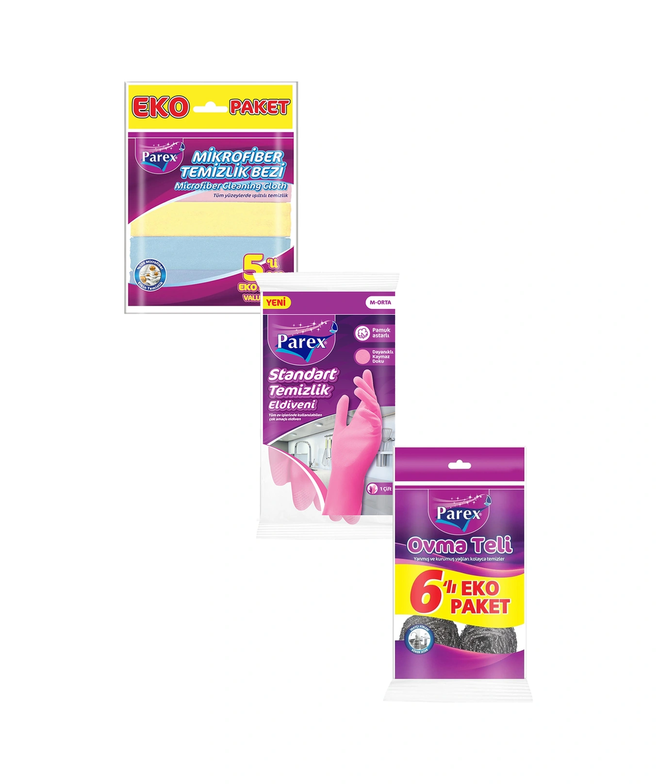 Temizlik Eldiveni 6'lı Ovma Teli Ve 5'li Mikrofiber Temizlik Bezi Paketi