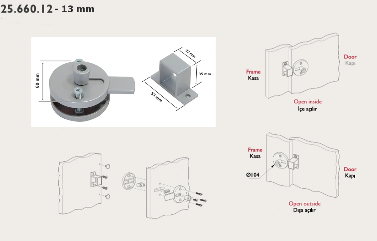 Tempo Islak Hacim 13 Mm Kapazlama Sürgülü Kabin Kapı Kilidi