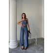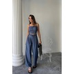 Tencel Crop Askılı Bluz - Şalvar Pantolon Tk - İndigo İndigo