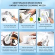 Tenfowee 5 Başlıklı Şarj Edilebilir Elektrikli Temizleme Fırçası - Yer, Banyo, Mutfak, Fayans Ve Küvet Temizliği İçin Beyaz