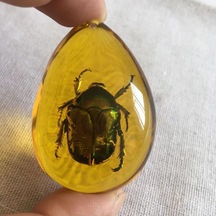 Tenfowee Amber Yapay Paha Biçimli Böcekli Altın Böceği İki Yönlü Gövde Takısı - Dekoratif Taş Koleksiyon Eşyası