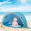 Tenfowee Mavi Köpekbalığı Desenli Çocuk Plaj Çadırı - Otomatik Açılışlı, Güneşten Koruyucu, Çift Kişilik Aile Ve Çocuklar İçin Sahne Ve Oyun Odası Mavi