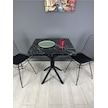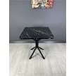 Tepe Siyah Mermer Mutfak Yemek Masası Balkon Masası Kavisli Köşe Siyah Ayak 70 Cm