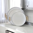 Tepsi Seti Ahşap Kulplu Metal Çay Tepsisi Kahve Tepsisi Sunum Kah