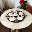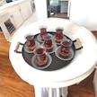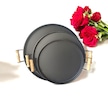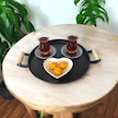 Tepsi Seti Ahşap Kulplu Siyah Metal Çay Tepsisi Kahve Tepsisi
