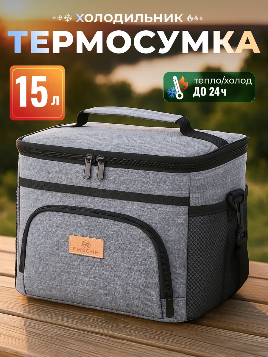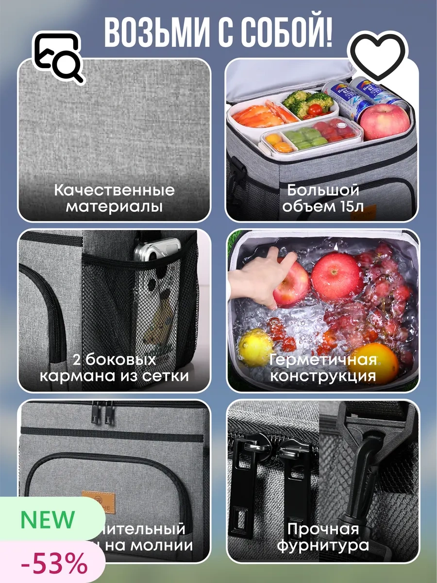 Perlotus Yalıtımlı Termos Piknik Kamp Çantası Büyük Boy 16 Lt Su Geçirmez İki Renkli Gri