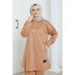 Tesettür İkili Takım Uzun Tunik Bol Paça Pantolon 4006-bej Bej