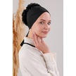 Tesettür Geçmeli Bağcıklı Viskon Likralı Dikişsiz Bone Siyah Siyah