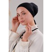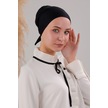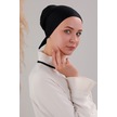 Tesettür Geçmeli Bağcıklı Viskon Likralı Dikişsiz Bone Siyah Siyah