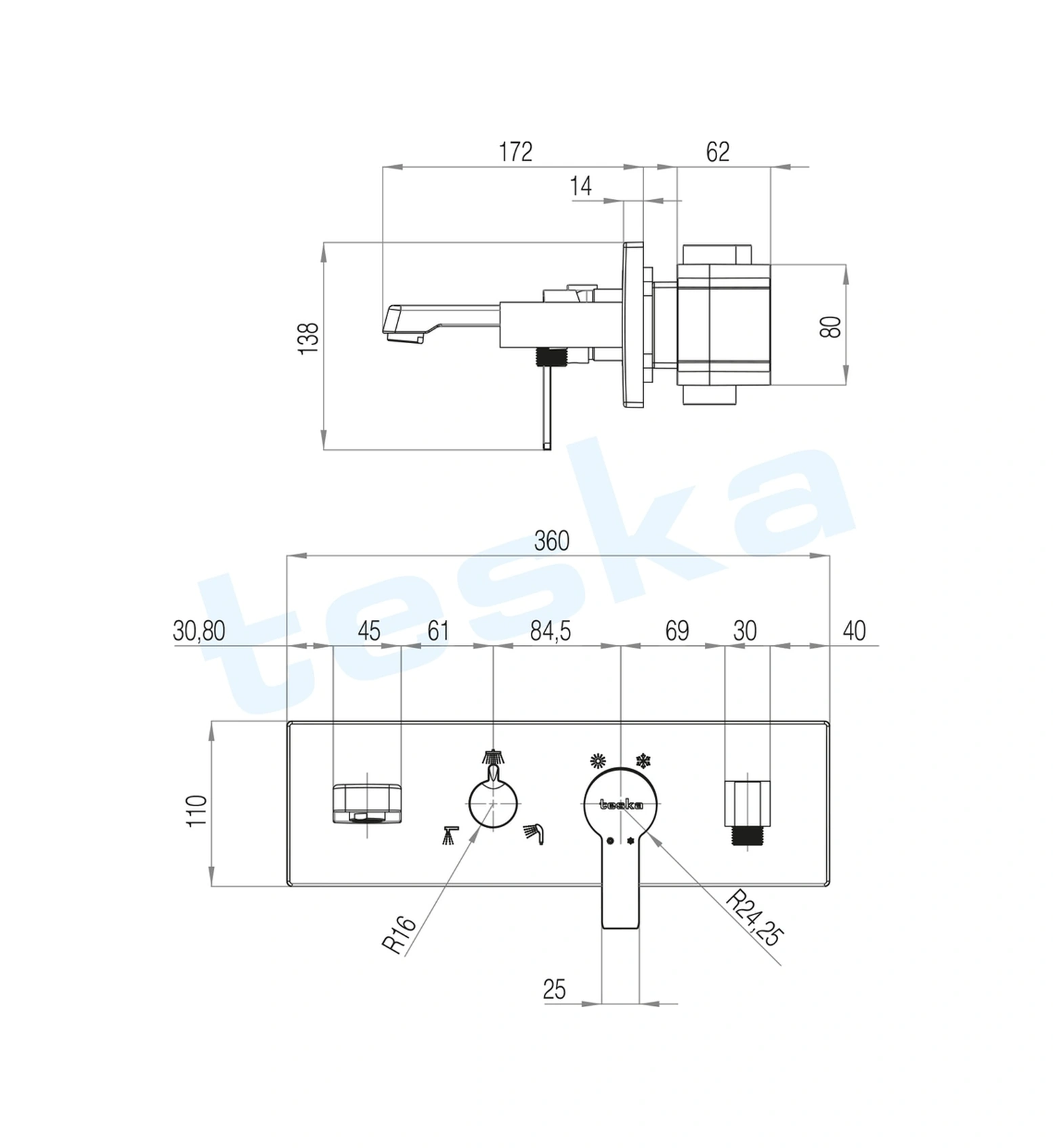 Teska Life Beyaz Camlı Üç Yönlü Yatay Ankastre Banyo Bataryası As 3100w Krom