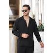 Tex Republic Erkek Siyah Rahat Kesim Dokulu Oversize Salaş Aerobin Gömlek Siyah