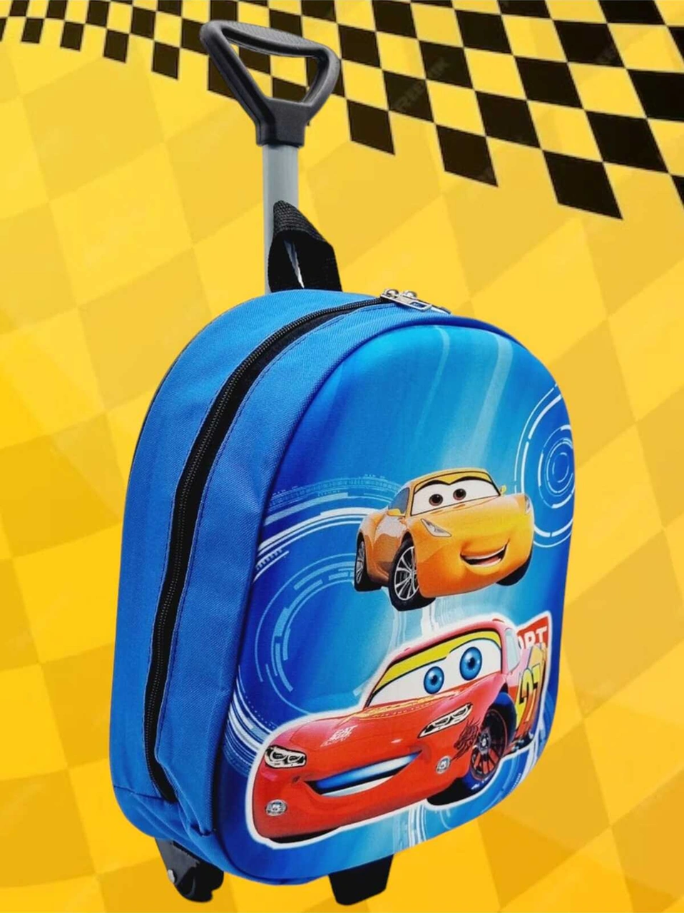 Tezzgelsin Anaokulu Kreş Şimşek Mcqueen 3d Kabartmalı Tekerli Ve Çekçekli Sırt Çantası Ve Okul Çantası Çok Renkli