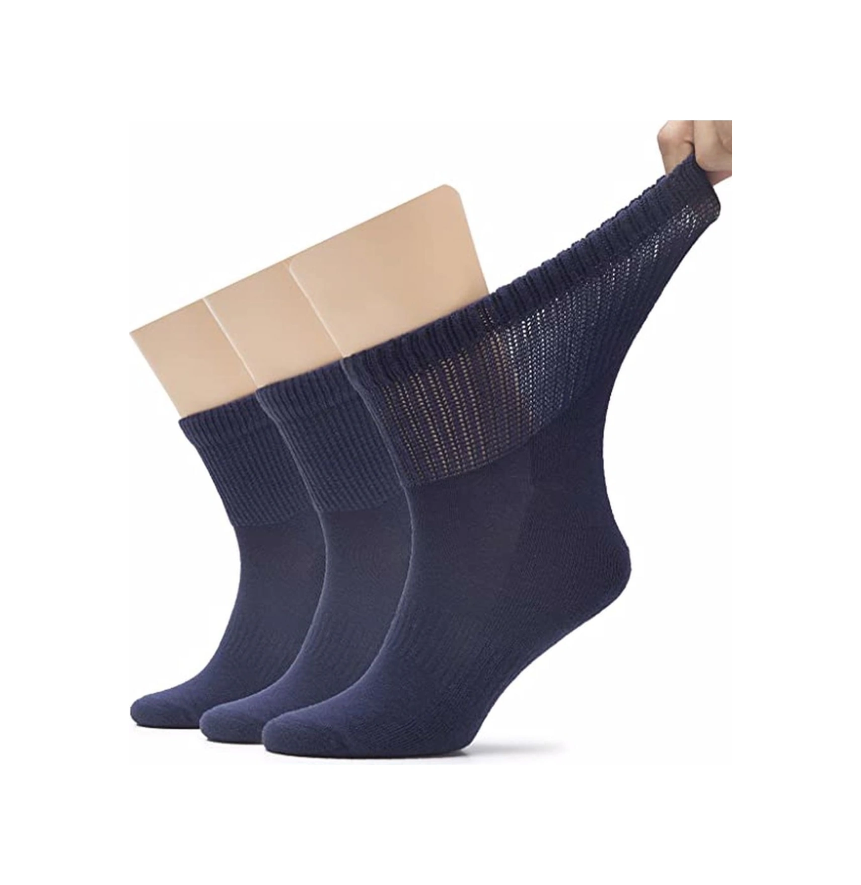 Tezzgelsin Erkek 40 - 44 Pamuklu Penye Diabetik Çorap Şeker Çorabı Lastiksiz Ve Koku Önleyici Çorap 3 Adet Lacivert