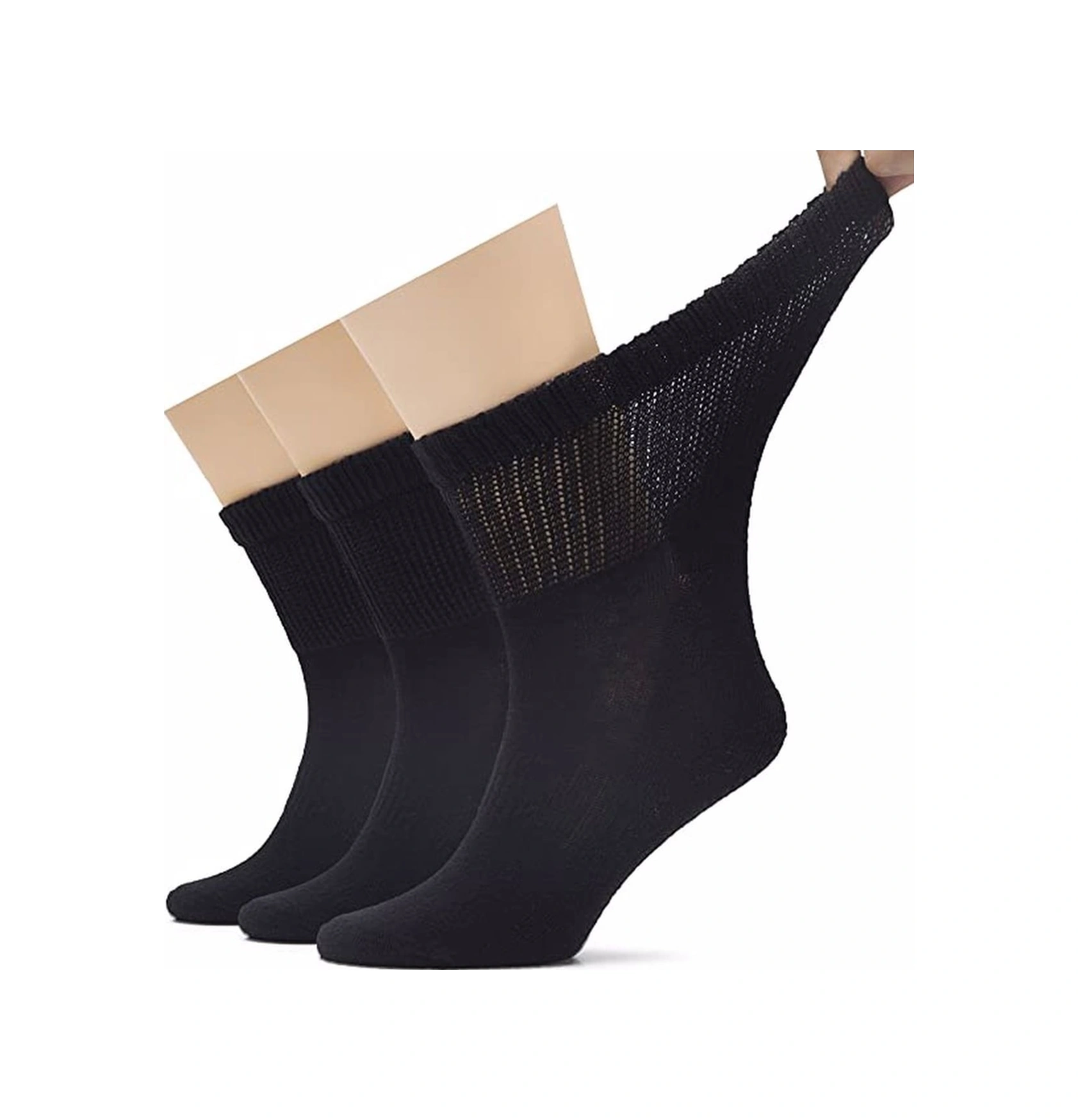 Tezzgelsin Erkek 40 - 44 Pamuklu Penye Diabetik Çorap Şeker Çorabı Lastiksiz Ve Koku Önleyici Çorap 3 Adet Siyah