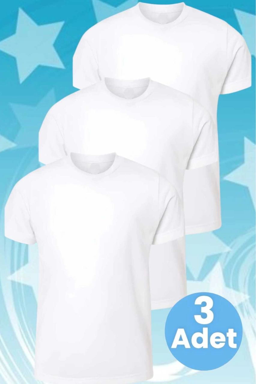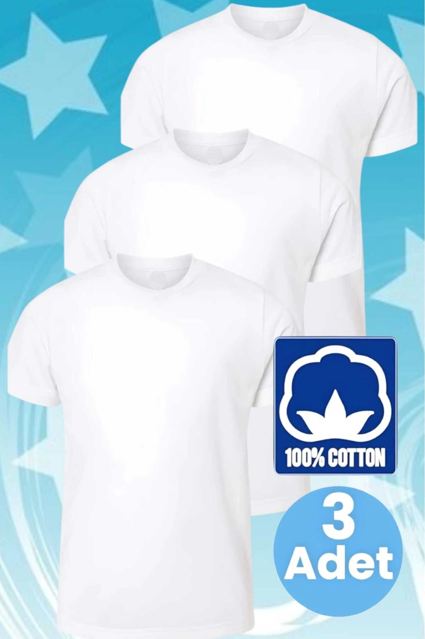 Tezzgelsin Erkek Çocuk %100 Pamuklu Sıfır Yaka 3'lü Fanila Beyaz