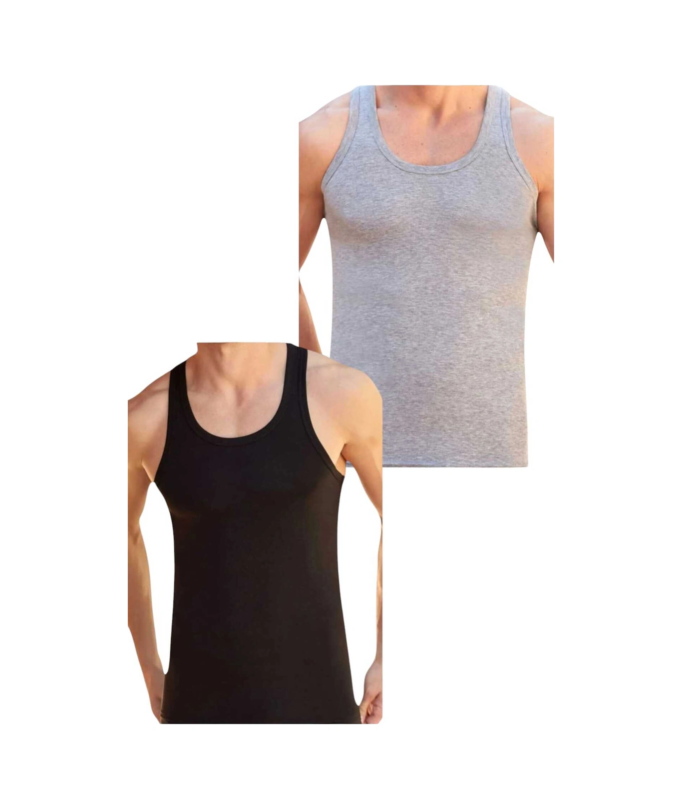 Tezzgelsin Erkek Pamuklu 2 Renk 12'li Atlet Gri - Siyah