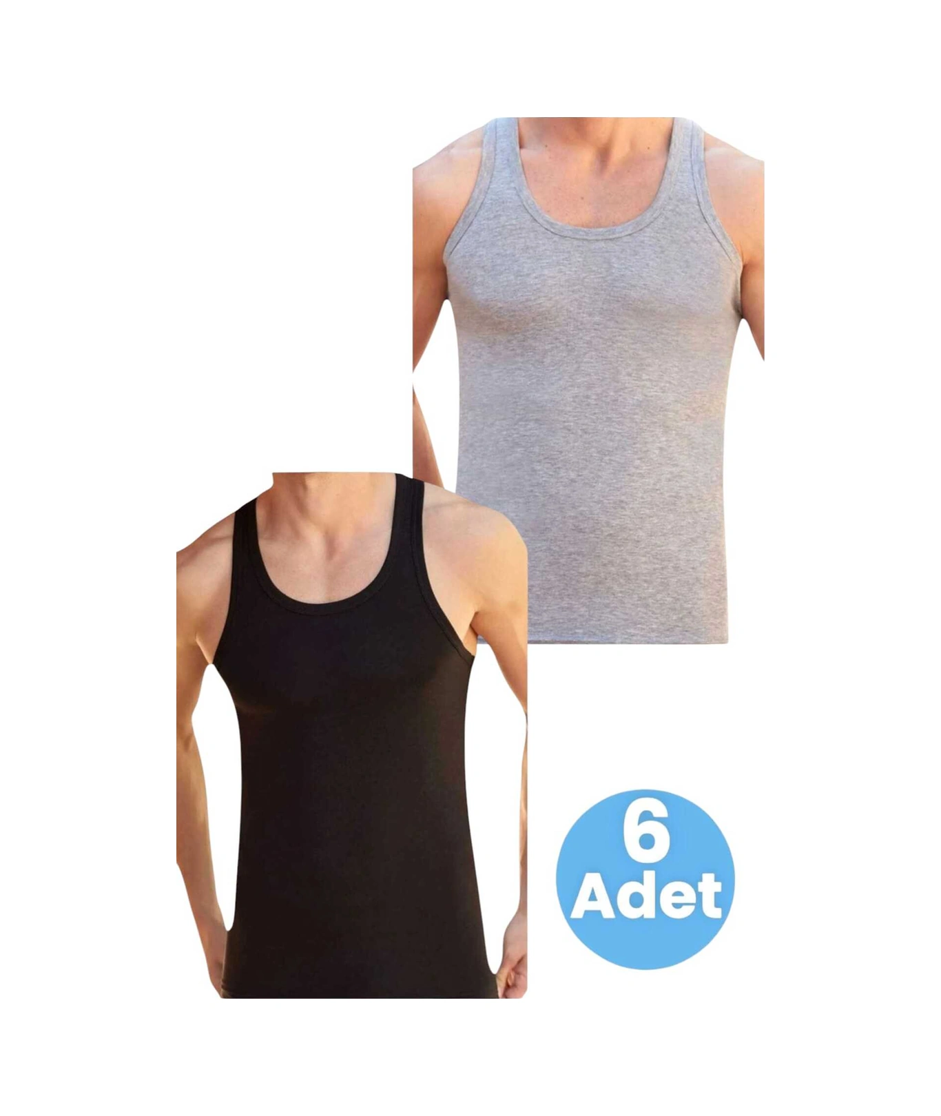 Tezzgelsin Erkek Pamuklu 2 Renk 6'lı Atlet Gri - Siyah