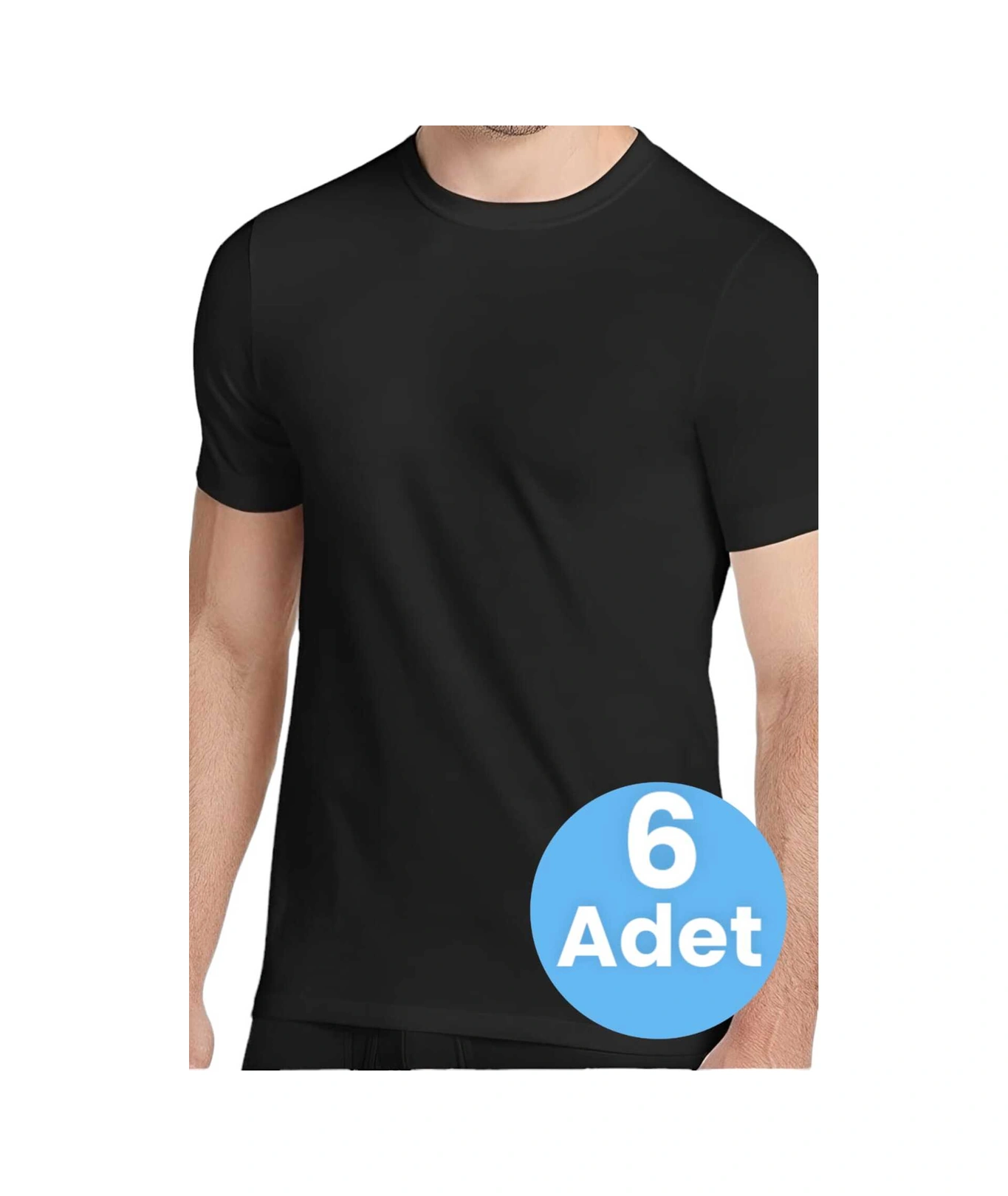 Tezzgelsin Erkek Sıfır Yaka Pamuklu 6'lı Fanila Siyah