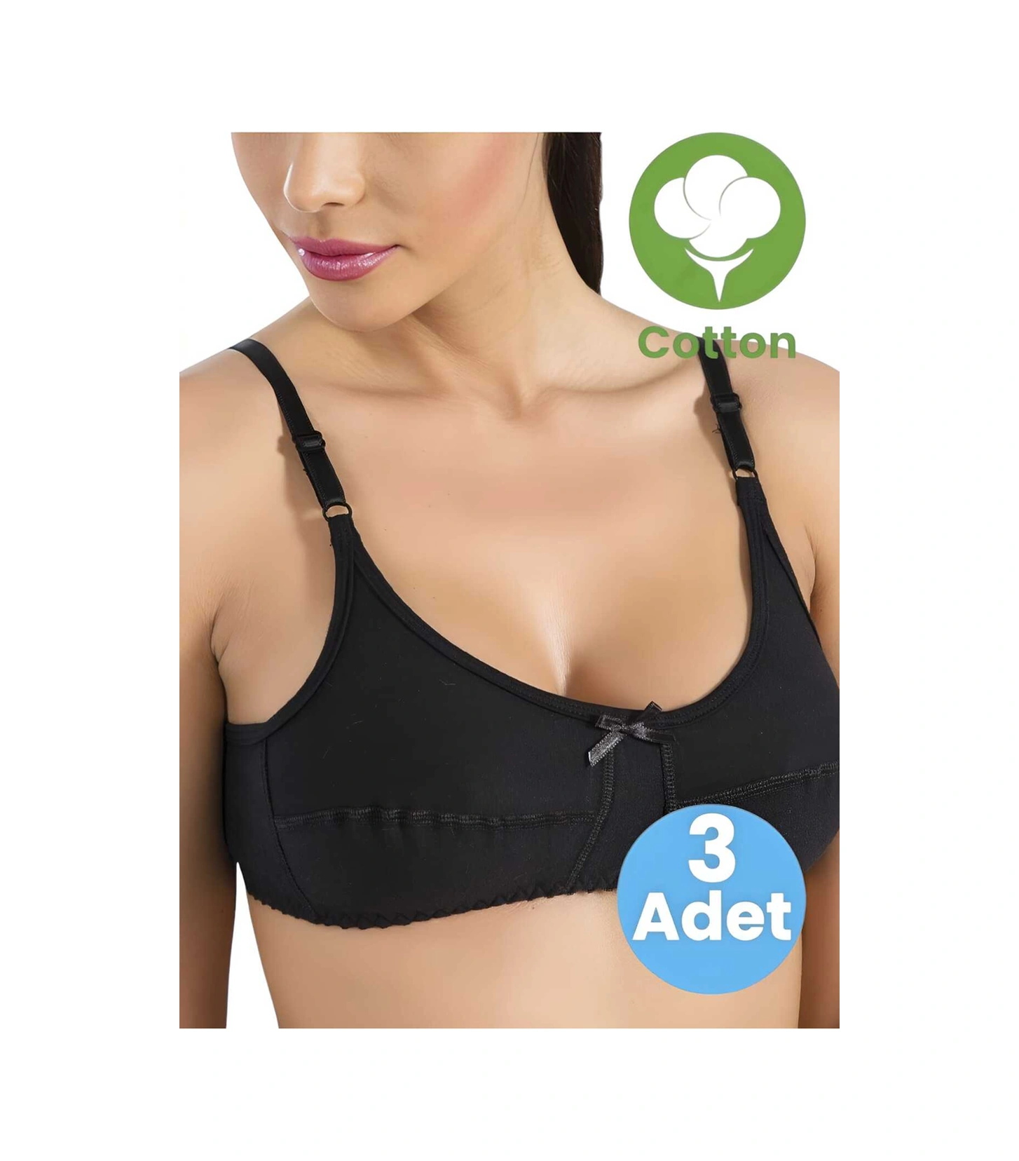 Tezzgelsin Kadın 3'lü Kurdele Detaylı Pamuklu Penye Sütyen Siyah