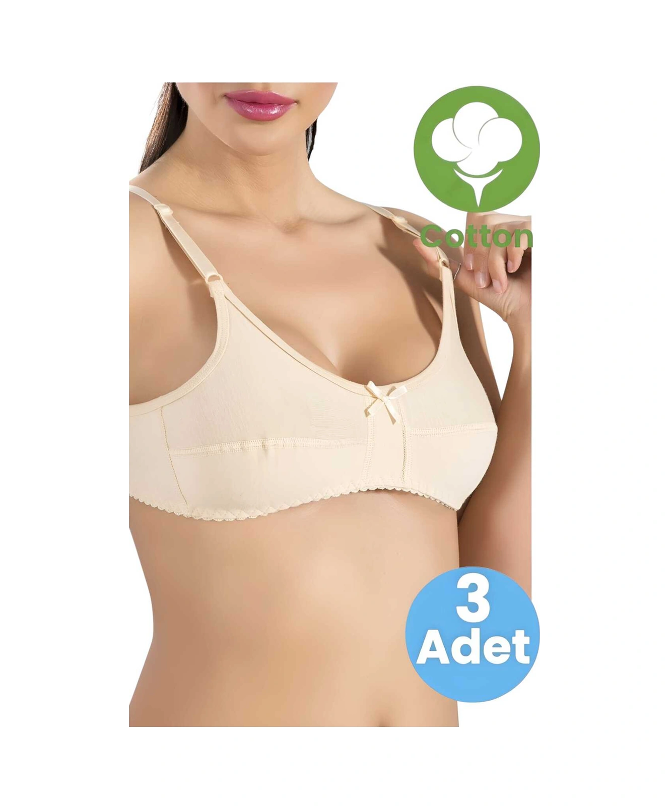 Tezzgelsin Kadın 3'lü Kurdele Detaylı Pamuklu Penye Sütyen Ten Rengi