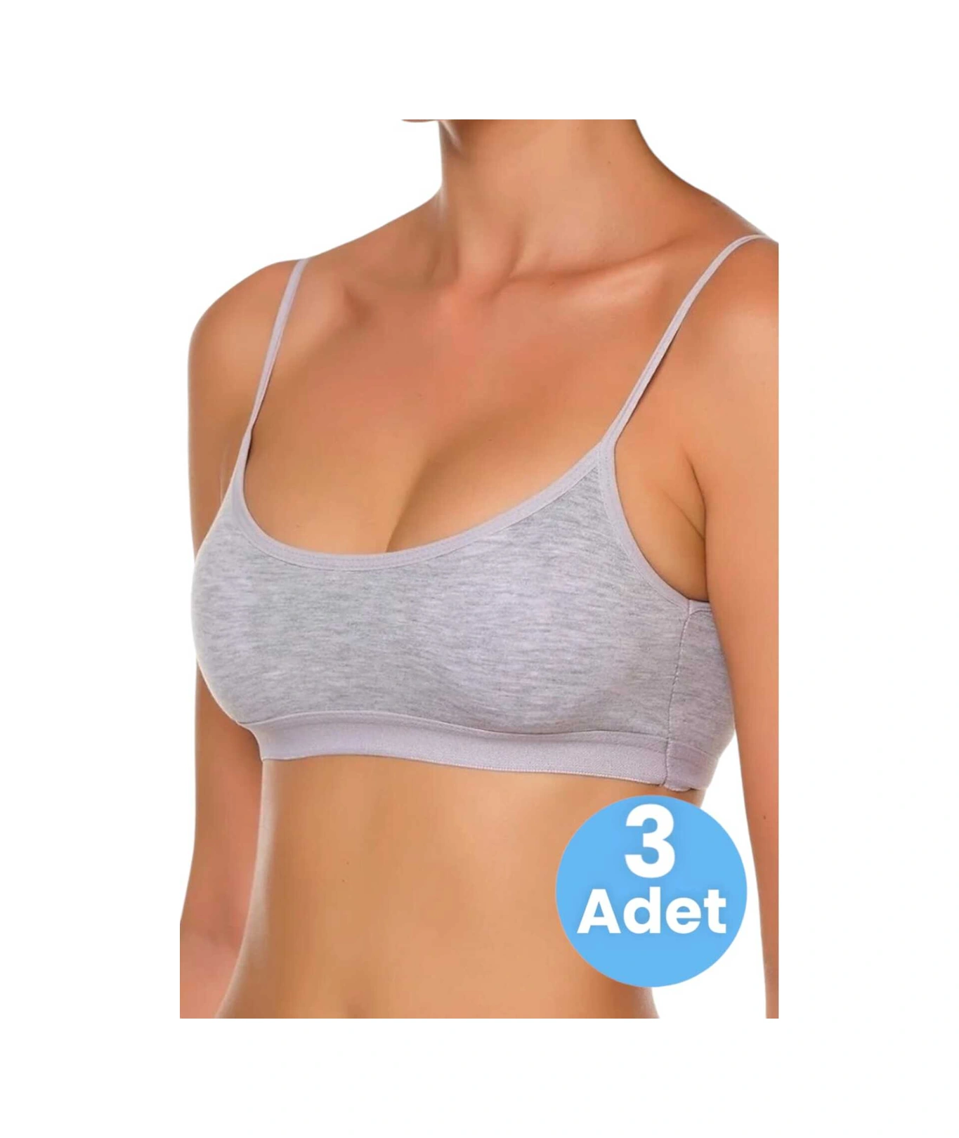 Tezzgelsin Kadın İnce Askılı Pedli Büstiyer Yarım Atlet Sütyen 3'lü Set Gri