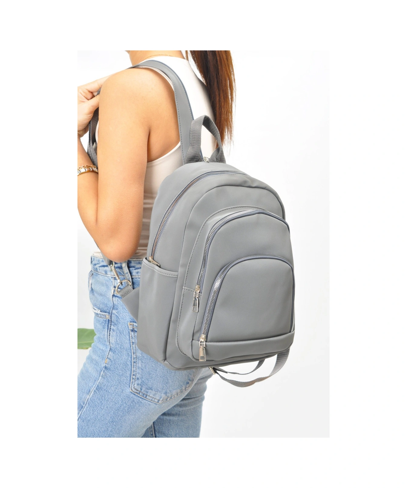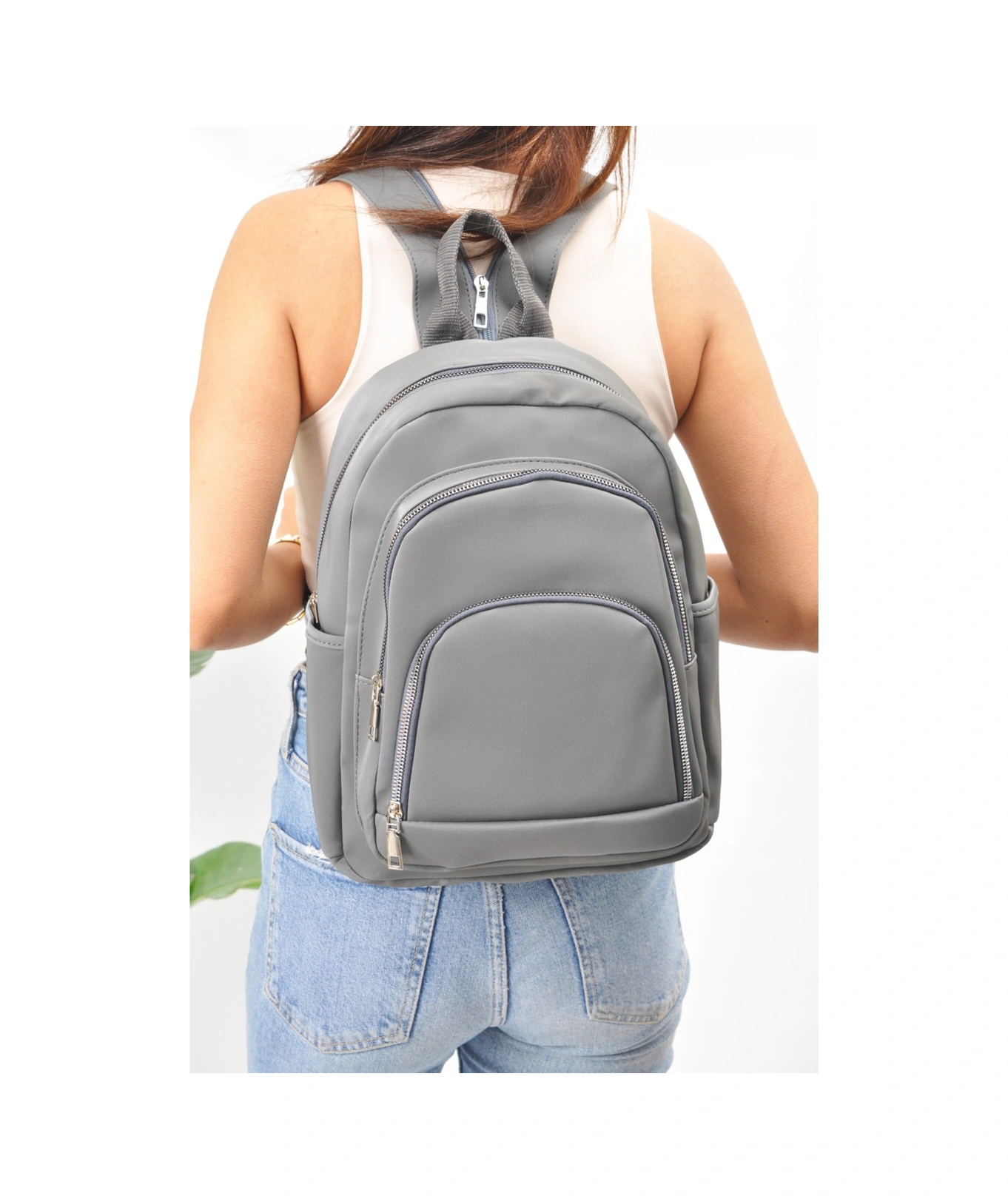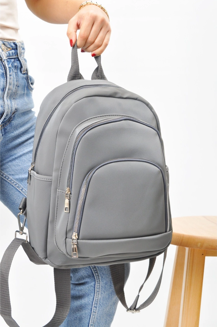 Tezzgelsin Unısex Su Geçirmez Saten Suni Deri Günlük Kullanım Sırt Çantası Gri