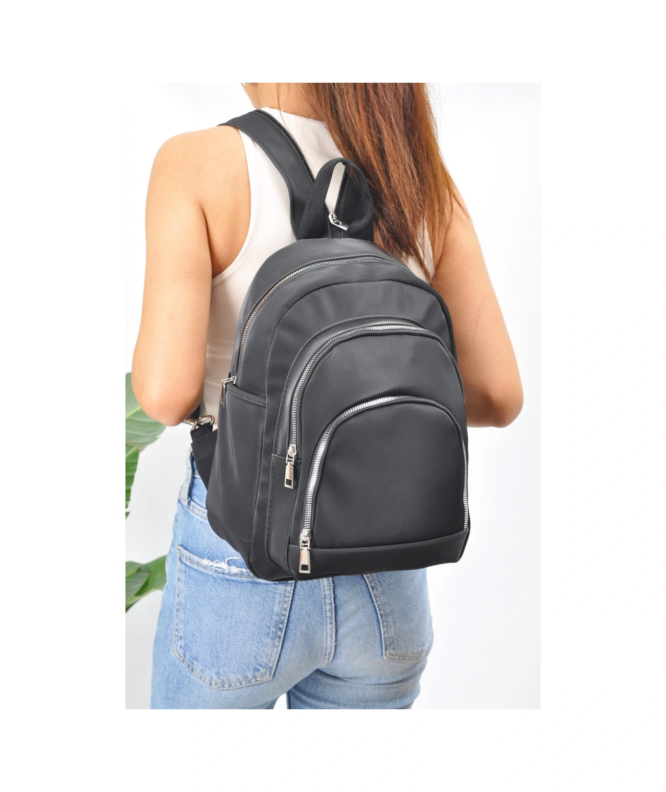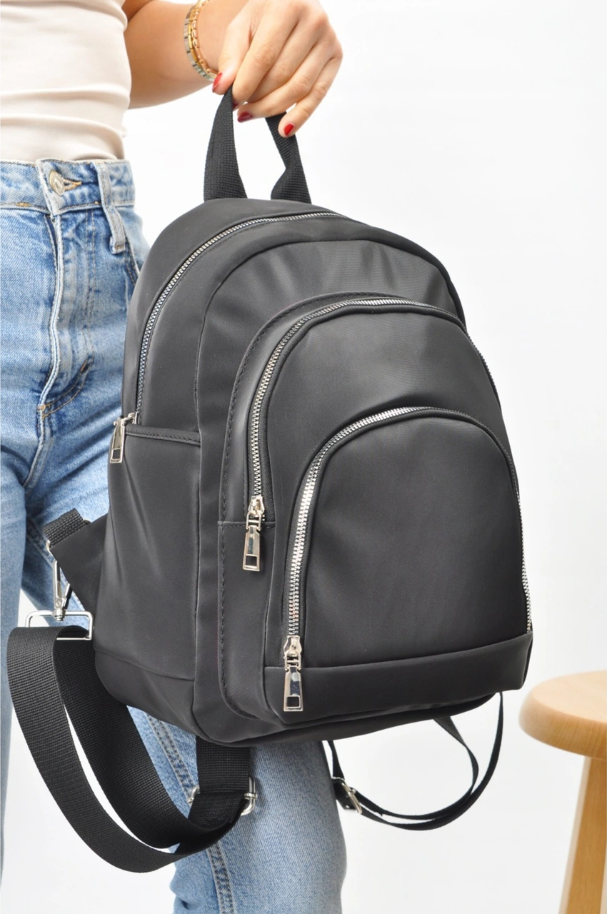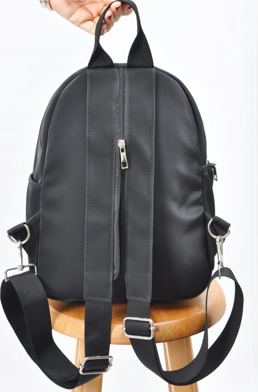 Tezzgelsin Unısex Su Geçirmez Saten Suni Deri Günlük Kullanım Sırt Çantası Siyah