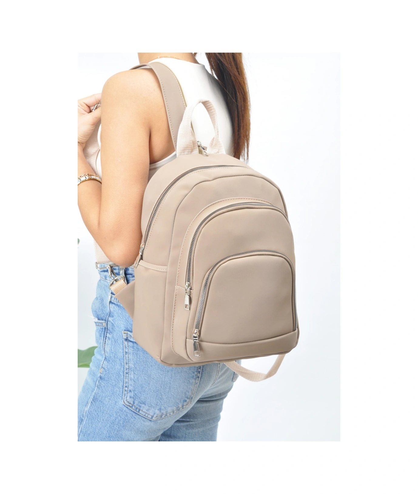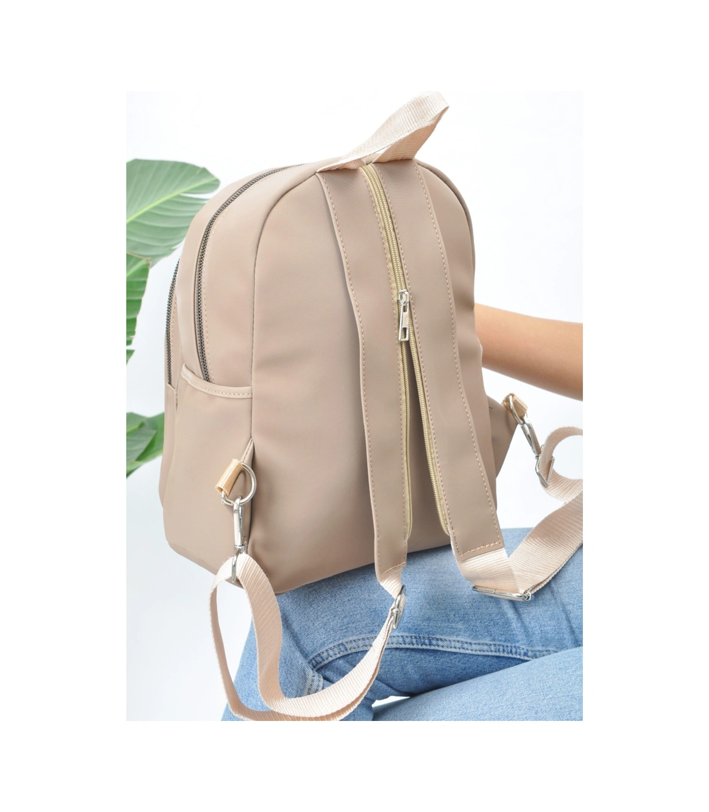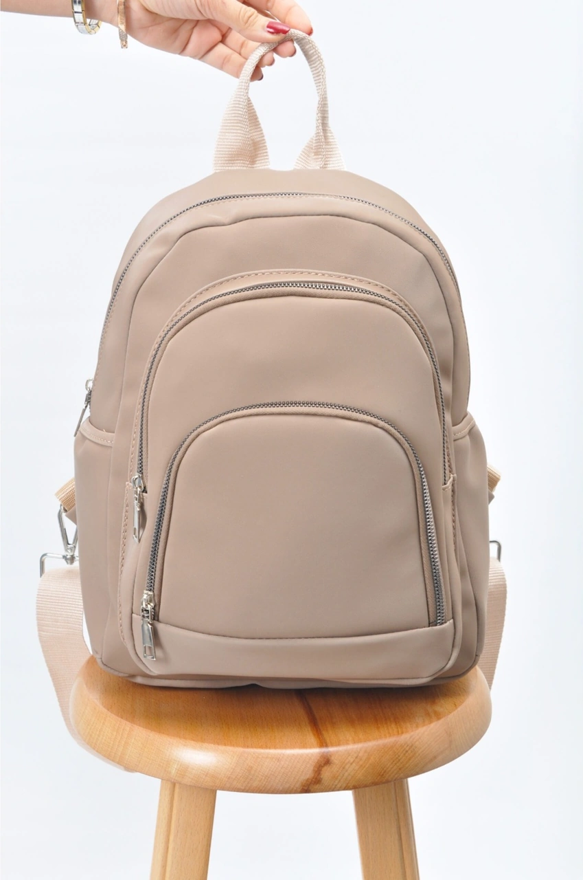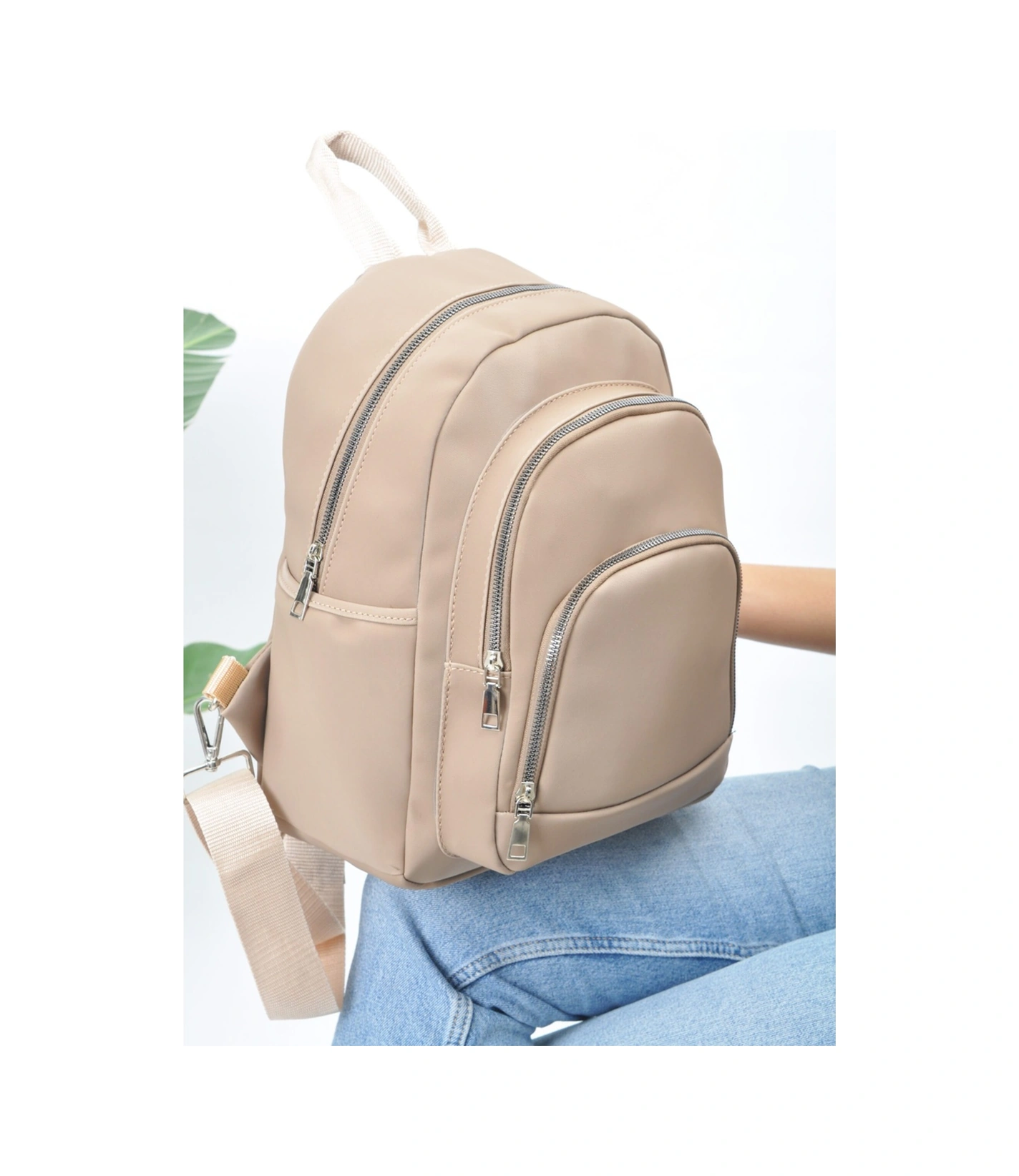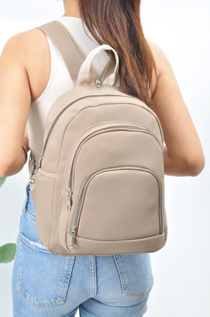 Tezzgelsin Unısex Su Geçirmez Saten Suni Deri Günlük Kullanım Sırt Çantası Vizon