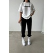Thatssofetch Beyaz T-shirt Siyah Eşofman Altı Jogger - Baskılı Alt Üst Takım Bisiklet Yaka Beyaz Siyah