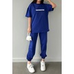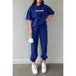 Thatssofetch T-shirt Eşofman Altı Jogger - Mavi Baskı Alt Üst Eşofman Takımı Oversize Bisiklet Yaka Saks Mavi