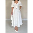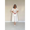 The İstanbul Ekru Göğüs Kup Detaylı Kemerli Brode Elbise Ekru