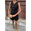 The İstanbul Gold Düğme Detaylı Yelek Şort Cotton Takım 10134-17 Siyah