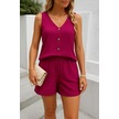 The İstanbul Kadın Askılı Kolsuz V Yakalı Önden Düğmeli Bürümcük Bluz Ve Short Ikili Takım Pembe