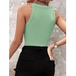 The İstanbul Kadın Halter Kollu Yuvarlak Taşlı Yaka Damla Detaylı Kaşkorse Bluz Yeşil
