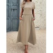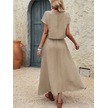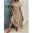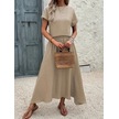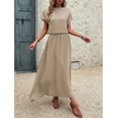 The İstanbul Kadın Kısa Kollu Bisiklet Yaka Bluz Etekli Ithal Keten Ikili Takım Bej