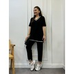 The İstanbul Kadın Kısa Kollu V Yakalı Iki Iplik Bluz Ve Pantolon Ikili Takım Siyah