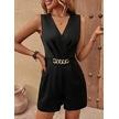 The İstanbul Kadın Sıfır Kollu V Yakalı Cep Detaylı Ithal Krep Tulum Siyah